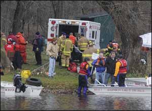 ![]() AP Photo/David Banks Rescue teams begin a search for three Chicago students who drowned in a river in Ill. Friday. The teens apparently sneaked away from a camp retreat to paddle along the river. |