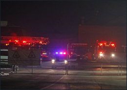 ![]() AP Photo/George Frey Emergency vehicles sit at the entrance of Pacific States Cast Iron Pipe Co. in Utah, where an explosion occurred Sunday night. Several people were taken to local hospitals. |