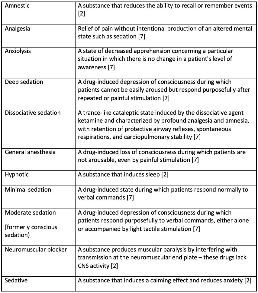 Applying standardized terminology allows healthcare providers at all levels to speak a common language. This, combined with an understanding of the fundamental difference between the role of sedation, analgesia and neuromuscular blockers, is necessary for anyone providing sedation.