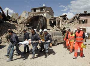 ![]() AP Photo,Sandro Perozzi Responders carry a stretcher in the village of Onna. |